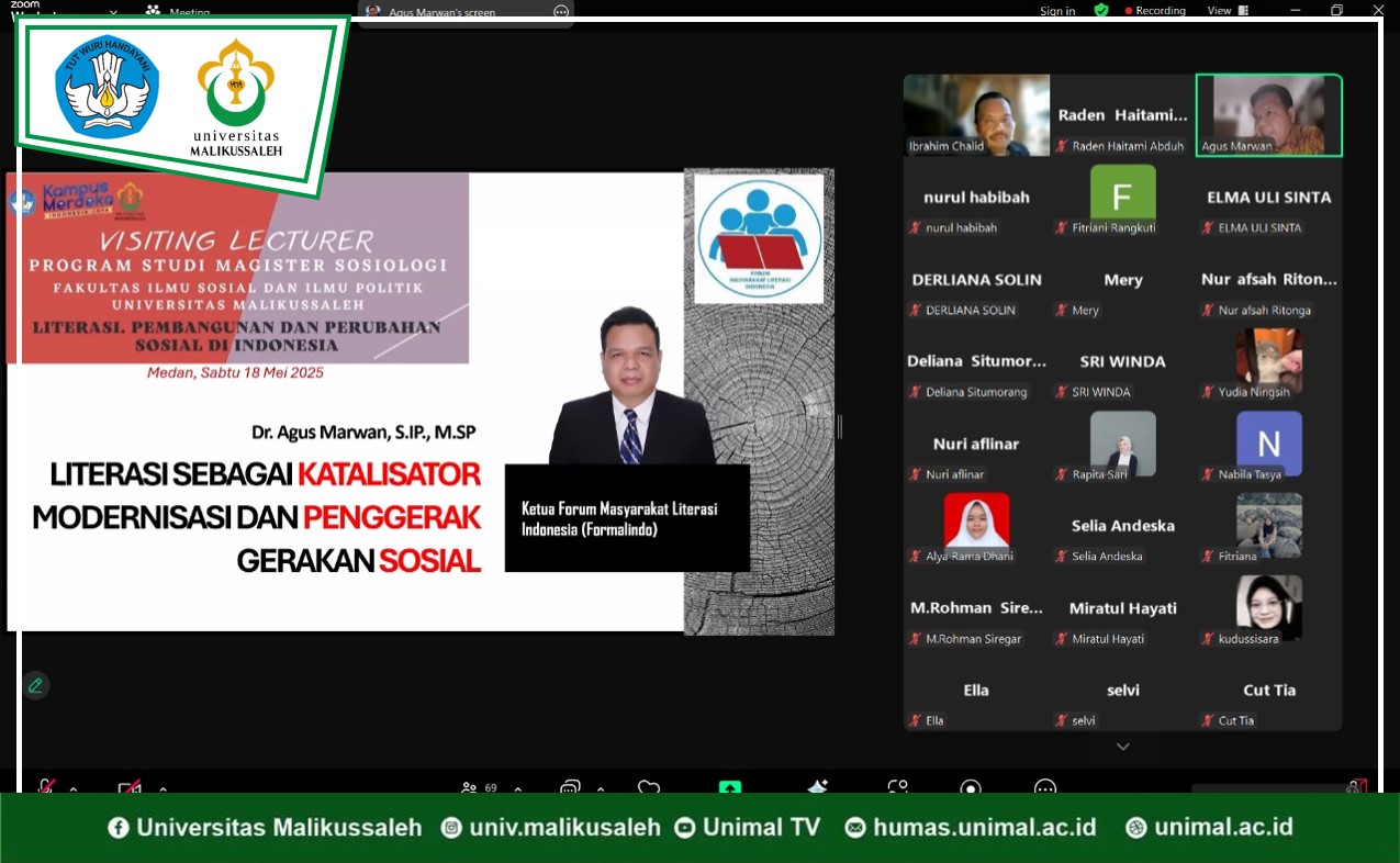 Lhokseumawe - Program Studi Magister Sosiologi, Fakultas Ilmu Sosial Dan Ilmu Politik (Fisipol), Universitas Malikussaleh menyelenggarakan kuliah tamu bersama Saurlin P Siagian MA terkait pemajuan dan penegakkan Hak Asasi Manusia (HAM) ...